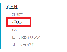 ・「安全性」→「ポリシー」→「ポリシーの作成」(初回時)or「作成」(既に登録済み)