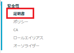 ・ポリシーの作成が完了したら再度左側メニューより「安全性」→「証明書」を選択