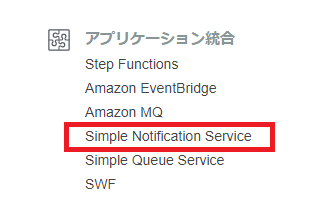【アプリケーション統合】の【Simple Notification Service】を選択