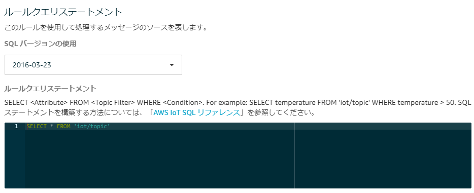 ルールクエリステートメント:SELECT * FROM 'freertos/demos/echo'