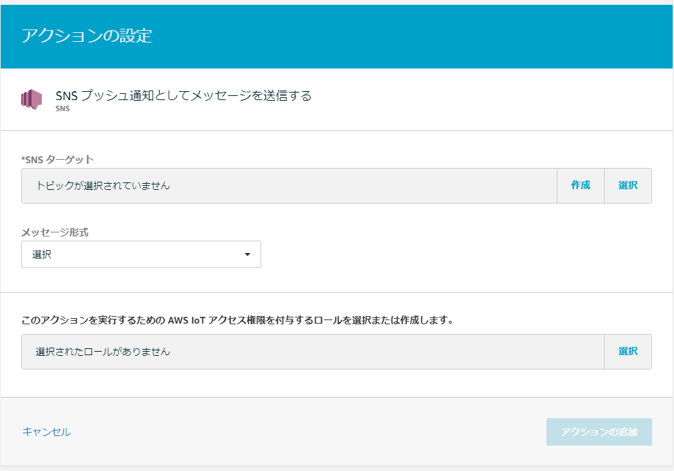 アクションの追加1:【SNSプッシュ通知としてメッセージを送信する】を選択