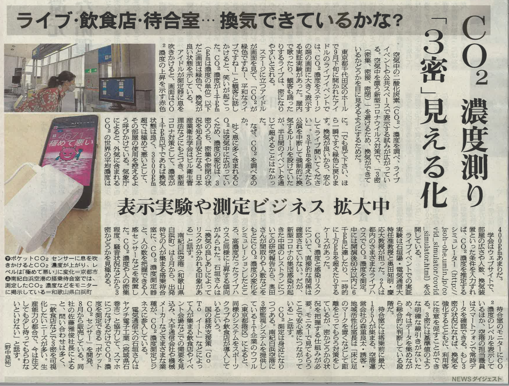 10月15日の朝日新聞夕刊にてCO2濃度を測定し公共スペース等で表示する試みについての