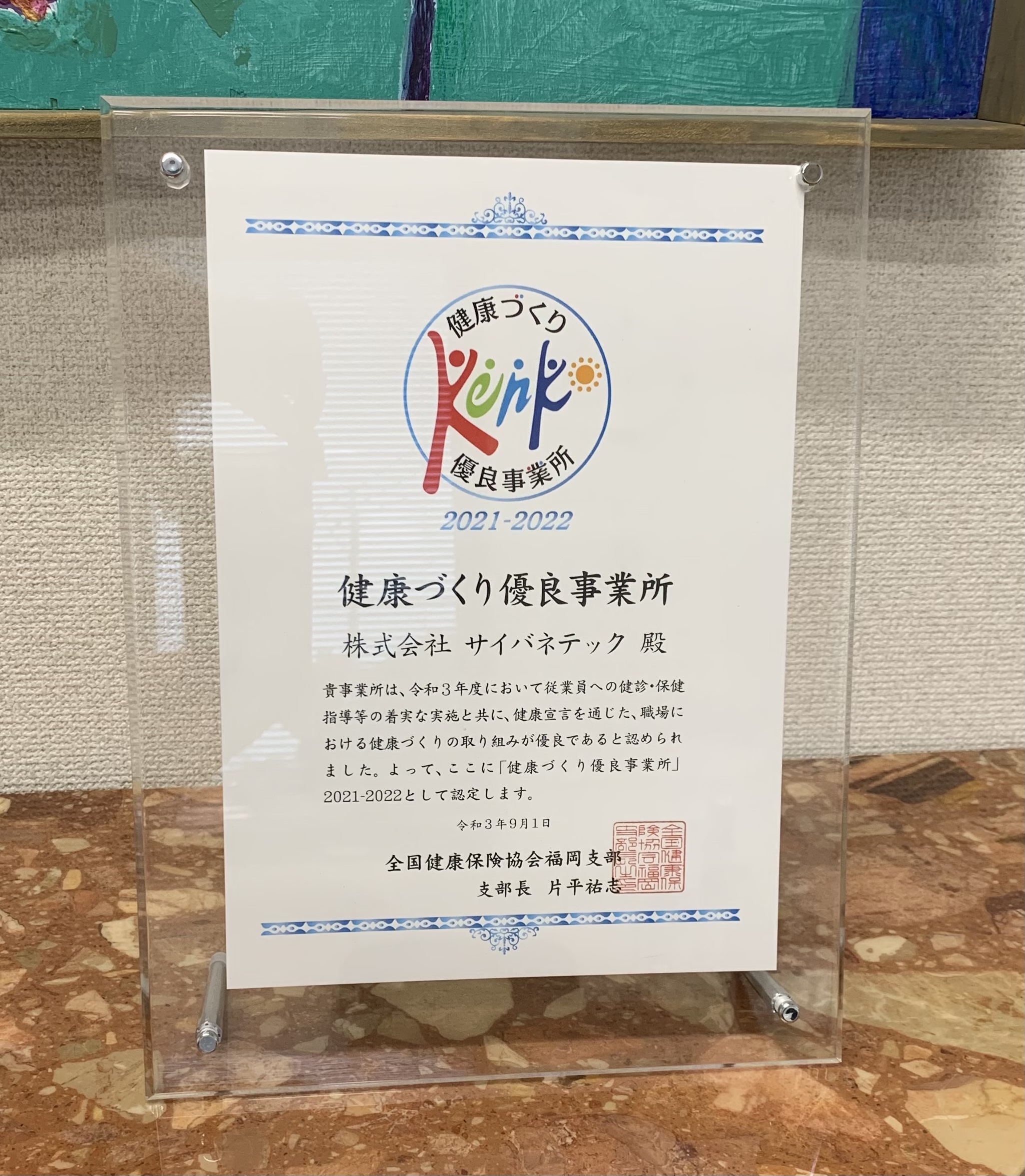 全国健康保険協会福岡支部実施の「令和3年度 健康づくり優良事業所」の